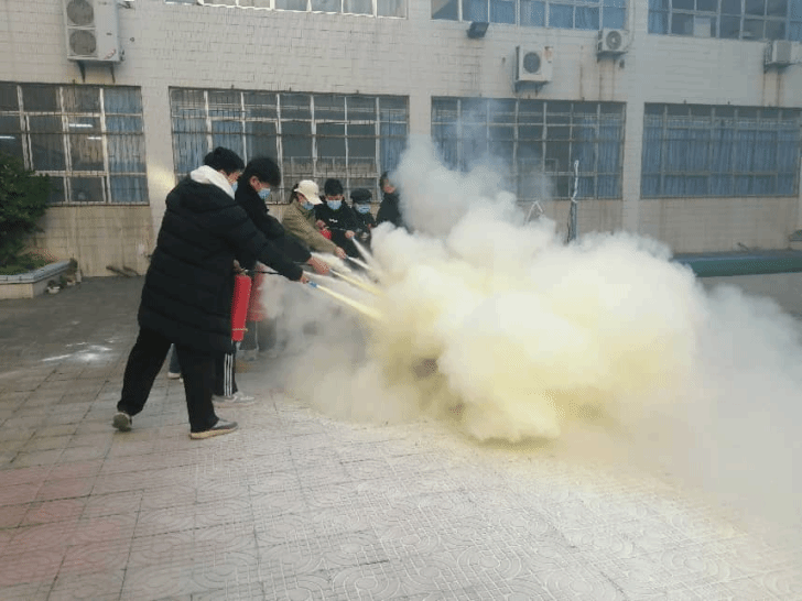 实操环节中,保卫处工作人员演示了干粉灭火器的正确使用方法,并组织师生分组进行油盆灭火练习。大家通过“提、拔、握、压”口诀熟悉操作步骤,进一步巩固了灭火技能。整个演练过程组织严密、衔接顺畅。