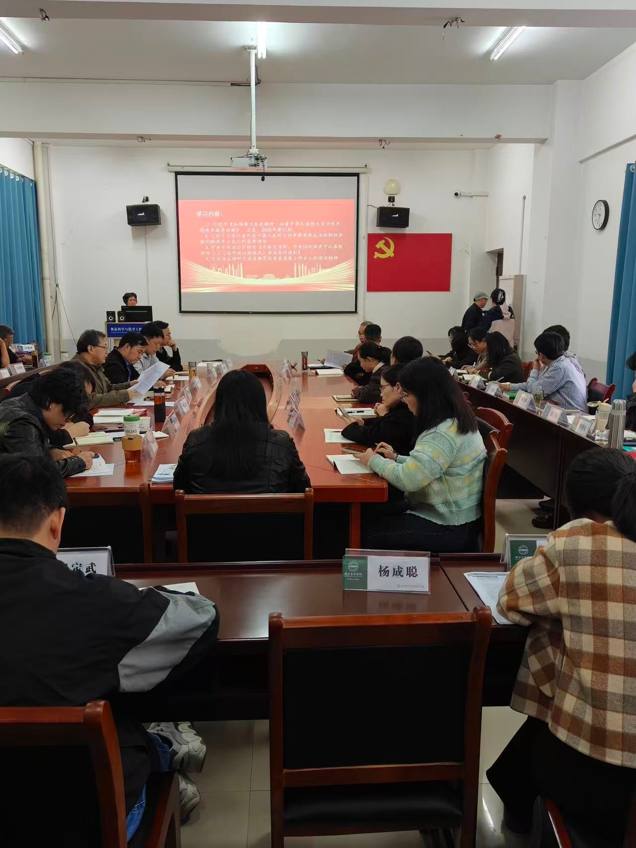 (食品科学与化学工程学院 窦素琴)为深入贯彻党的教育方针,落实学校2025年10月份教职工政治学习计划,食品科学与化学工程学院于2025年10月16日下午2时,在学院三楼330会议室隆重举行了全体教职工大会。本次大会由学院党委书记储杰同志主持,旨在进一步统一思想、凝聚共识,为学院的发展贡献力量。