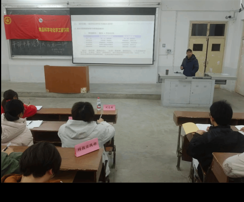 (通讯员 向琼)为提升25级学生干部干事综合素质并能正确地认识到作为干部干事的职责,食品科学与化学工程学院于11月18日在N4-JT04举办了新一期学生干部干事培训大会。会议由人资部干事主持,食化学院团委学生会社联全体干部干事参加,学院党委副书记刘志新主讲。