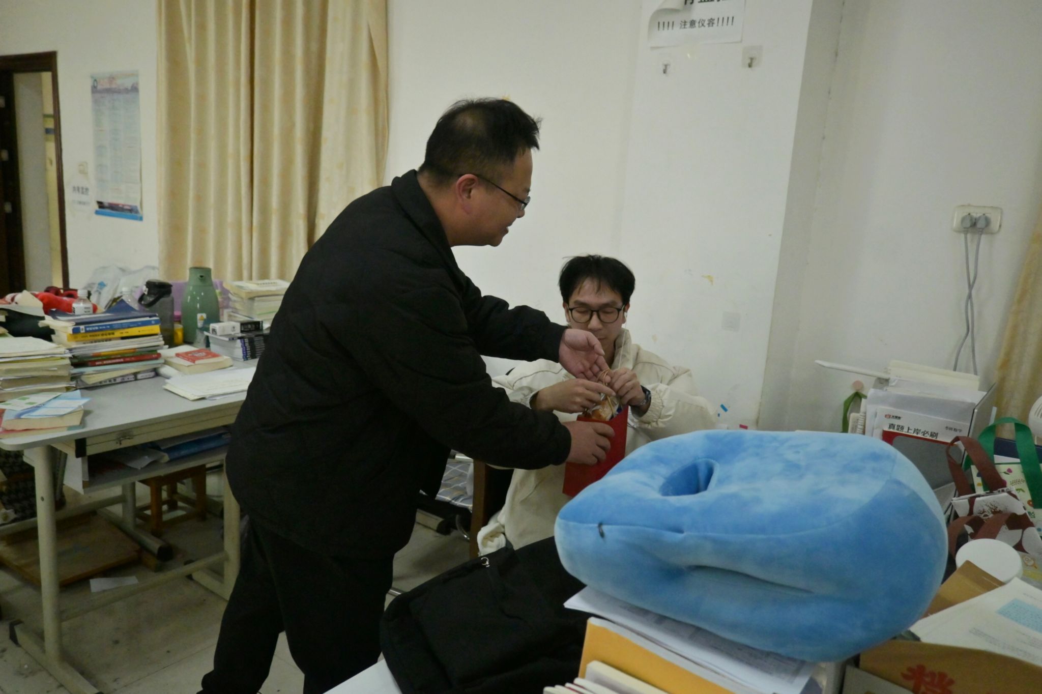 慰问现场氛围温馨融洽,校领导亲手将“考研加油包”递到学子手中。考研祝福卡片上的声声鼓励以及加油包中的贴心物品,让学子们在冬日备考之路上感受到了满满的温情。